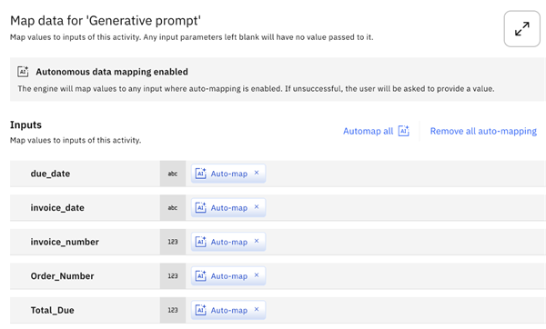 Similarly, click on the Generative Prompt and then select Edit Data Mapping. Here, you’ll see all the variables created for the generative prompt. By default, the Auto Map option is enabled, which automatically maps the variables for you, streamlining the integration process.