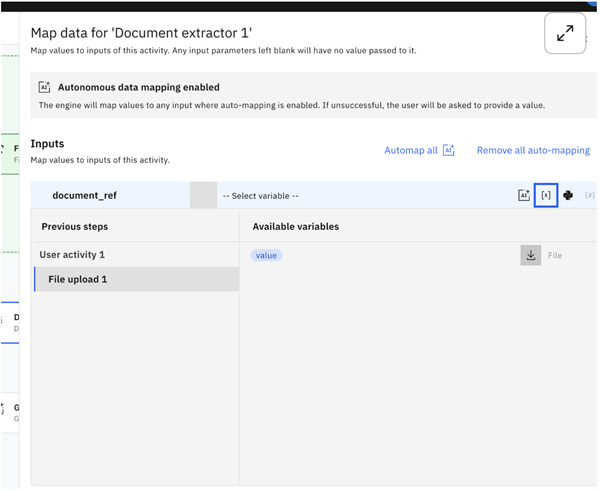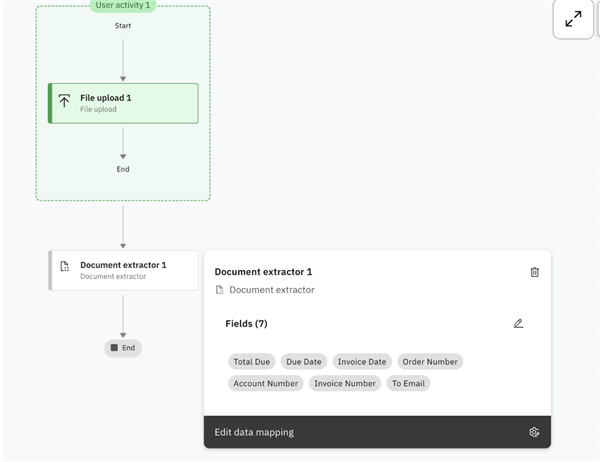 Next step is to perform data mapping between components.Click on the document extract and then edit data mapping