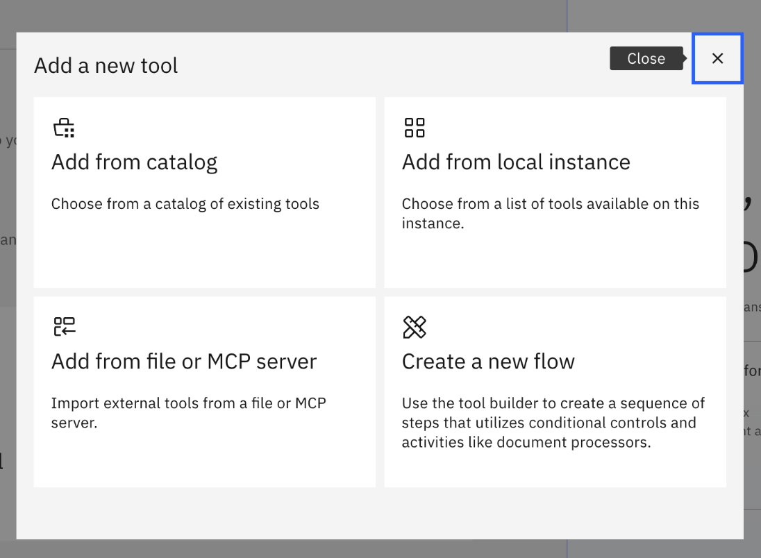 When the Toolset option is clicked, an "Add a New Tool" popup will appear with four available options. To create a custom workflow, select the "Create a New Flow" option.