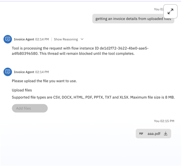 Once the user uploads the invoice file, the agent automatically initiates the document processing workflow. It begins by reading the contents of the file using the Document Extractor, which identifies and extracts key information such as invoice number, dates, line items, total amount, taxes, and vendor details.This extracted data is then passed to the Generative AI component, which interprets the information and generates a clear, concise, and meaningful invoice summary. The summary may include insights such as payment status, due dates, total payable amount, and any anomalies or noteworthy items.This end-to-end process is designed to reduce manual effort, improve accuracy, and deliver fast, actionable insights directly from the uploaded invoice document.