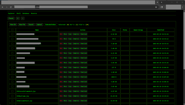 Here you can see the first screen shot that I took, still in disbelief. The file names are covered as I landed on the directory where I placed the WebShell file. (Yes, I use an annoying number of tabs, sue me)