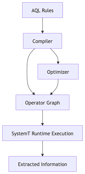 - Compile to Operator Graph – Translates rules into operators like Extract, Select, Join, Consolidate.