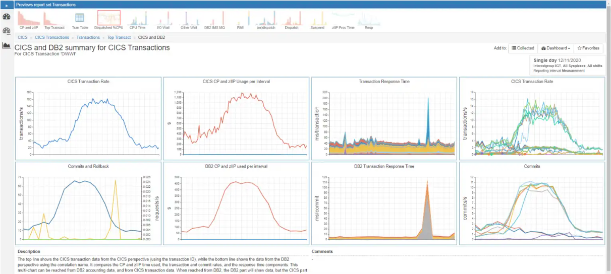 This effective integration (mashup) of these data types is not possible with separate views from a separate CICS monitor and Db2 monitor. This improves incident diagnose time and leads to actionable steps more quickly.