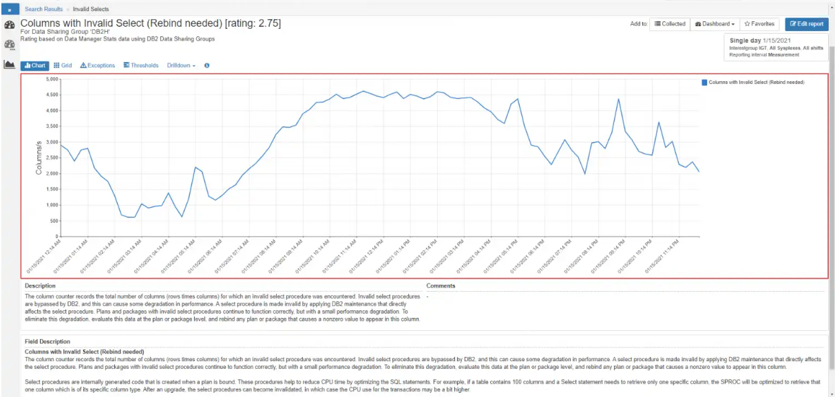 Figure 3: IntelliMagic Vision DB2 reporting example containing helpful descriptions and recommendations
