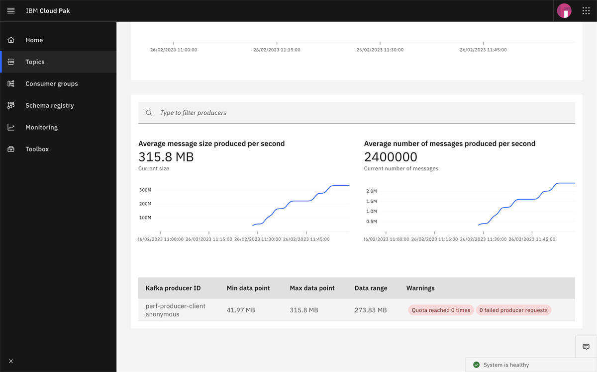 That gave me an idea of what my current Event Streams cluster setup can comfortably do.