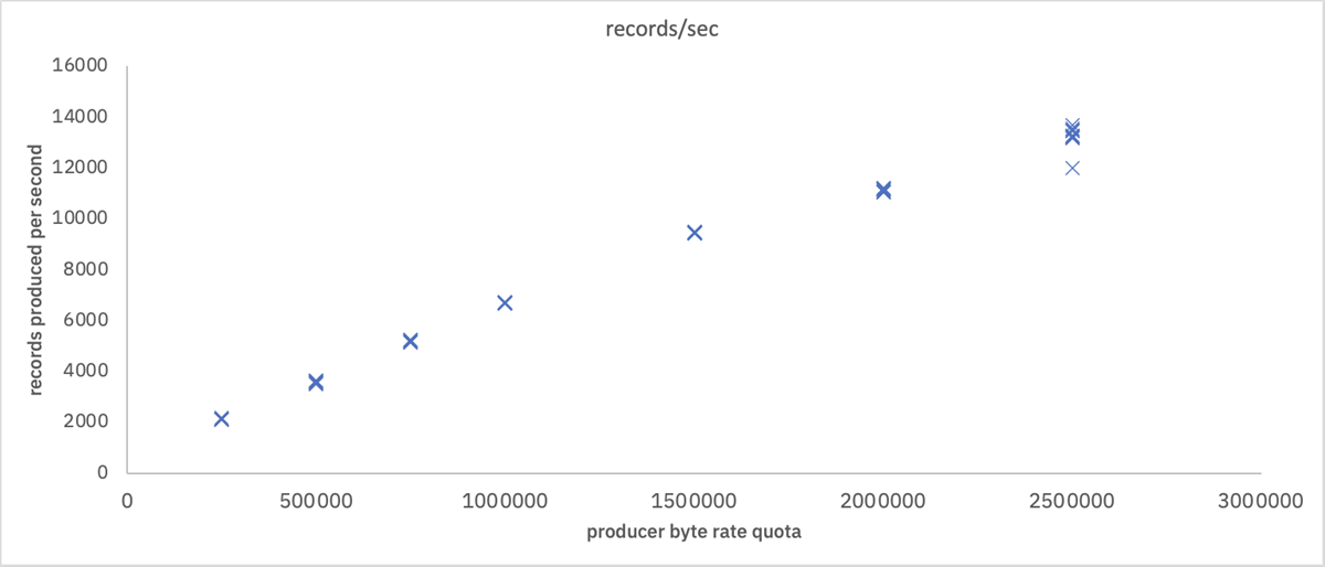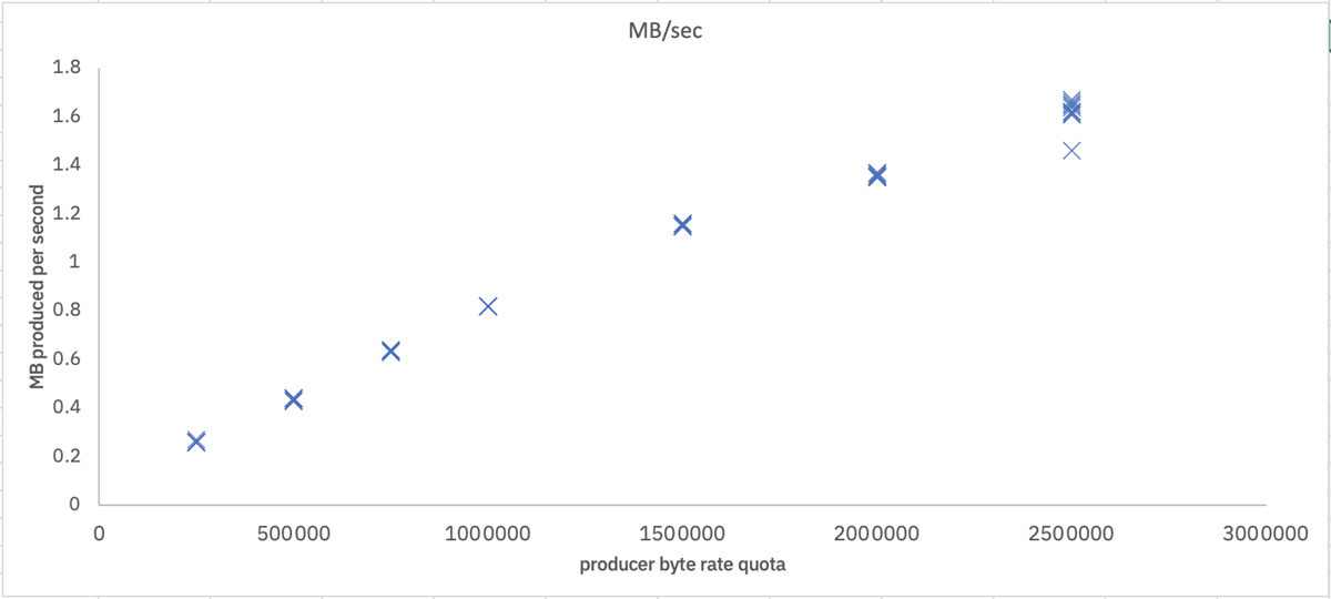 To illustrate this further, I re-ran the test with a variety of different producerByteRate values.