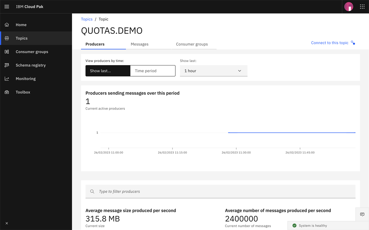For more information about any of this, please see the Kafka documentation on quotas or the Event Streams documentation on how to set your client quotas.