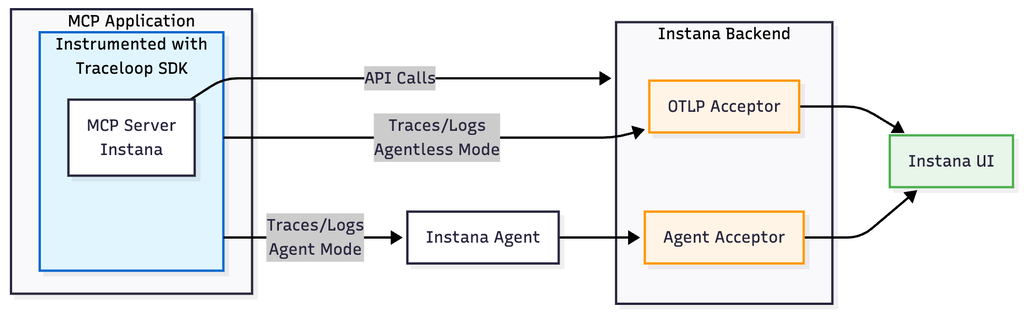 Here is an architecture of how Instana integrate with traceloop SDK and enable MCP observability.