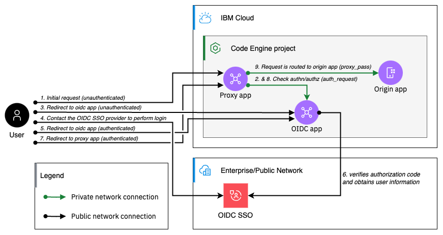 8. If successful, Nginx forwards (proxy_pass) the original request to the protected application (Origin app).