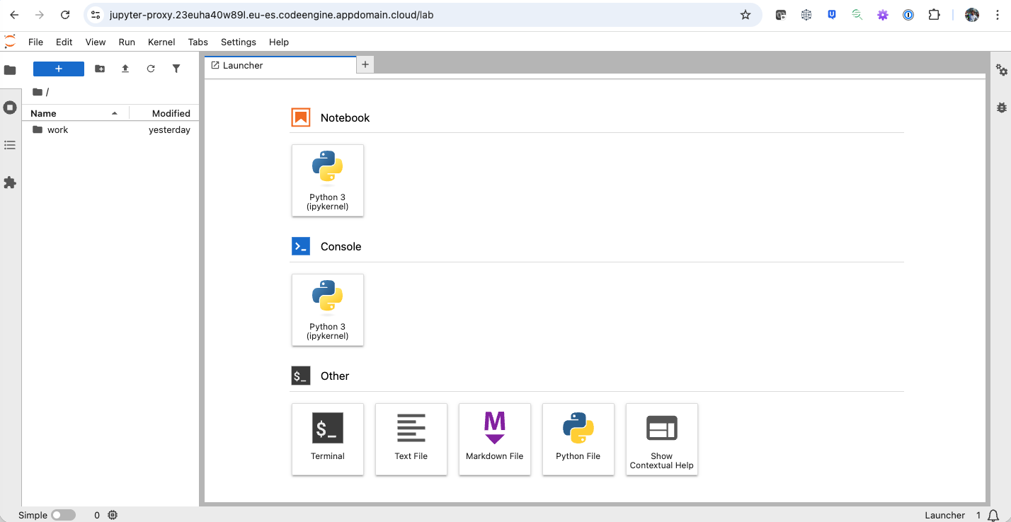 Now, that we do have everything in place, let us call the jupyter-proxy app by opening a browser and calling the proxy app endpoint. Once the login procedure has been passed, you’ll be greeted with the JupyterLab dashboard.