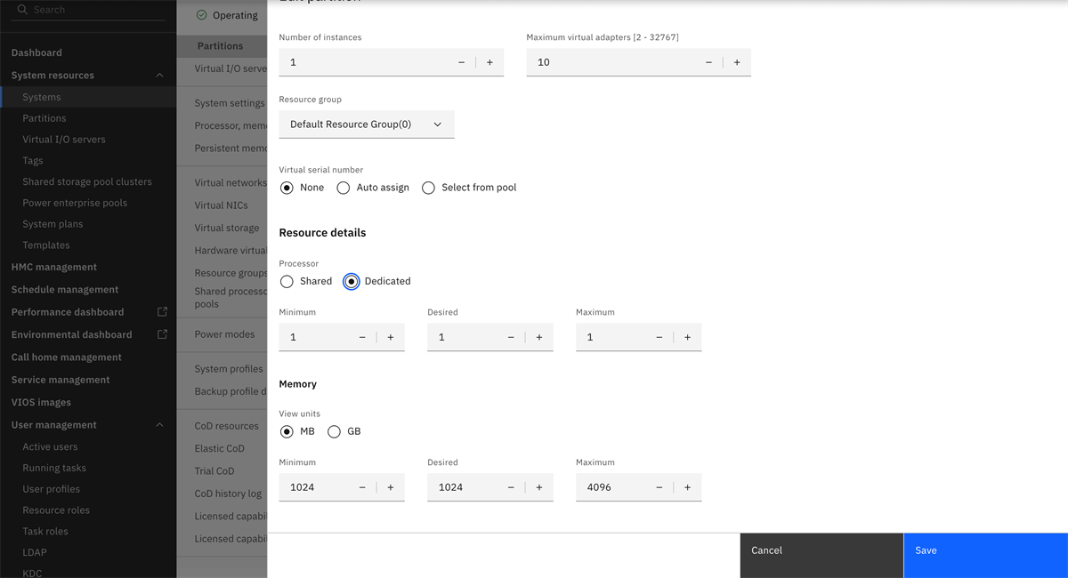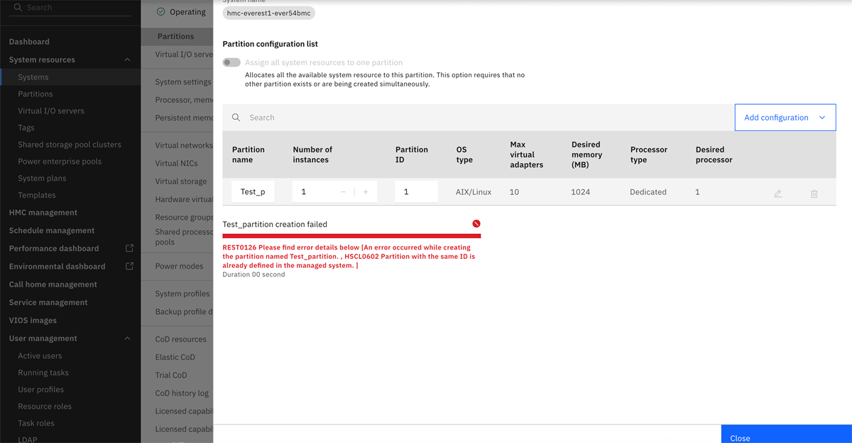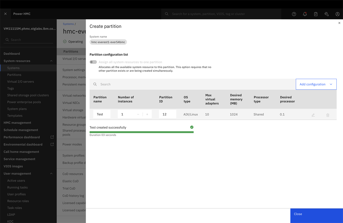 Compared to the former multi-step, rigid workflow, the modern React-based design brings everything together in a unified dashboard. Administrators can now create single partitions through a simple, straightforward form or build out multiple LPARs using a scalable grid layout. Inline input and instant validation flag configuration errors at once, slashing the time spent correcting issues and vastly improving user experience. What was once a slow, segmented sequence is now a single, smooth, and responsive process.