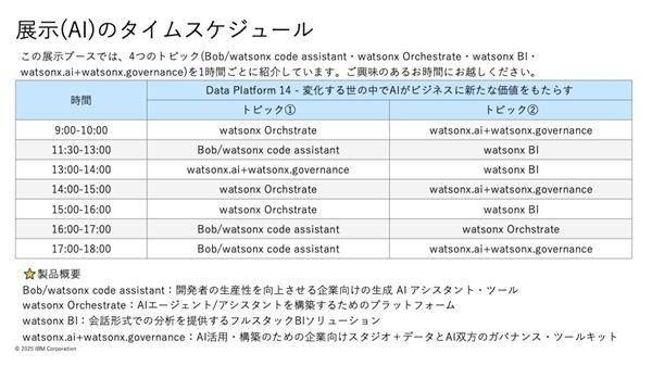 イベント全体でお客様登壇を含む100以上のセッションが予定されております。watsonxとしても12のセッションと5のハンズオンセッションを用意しております。