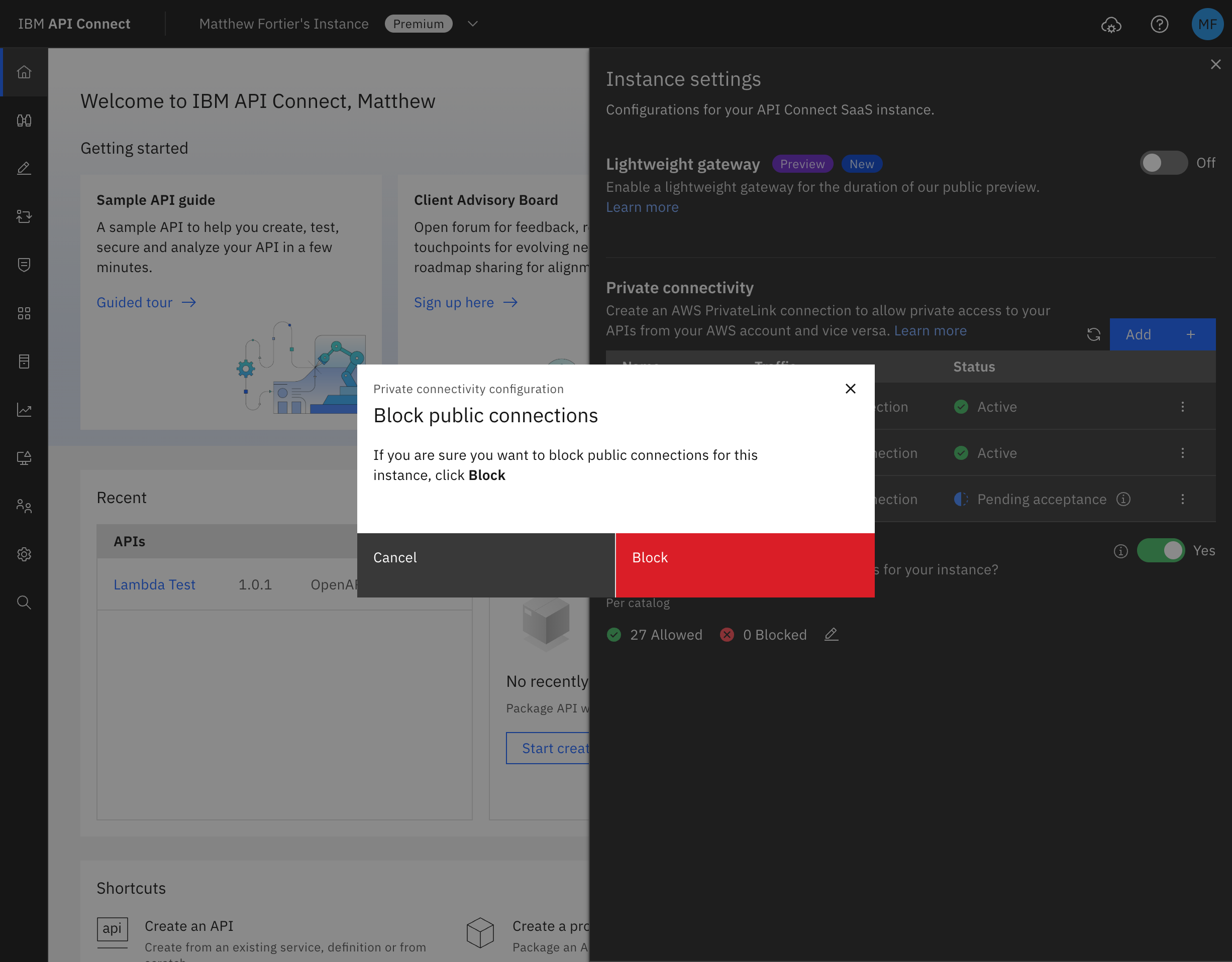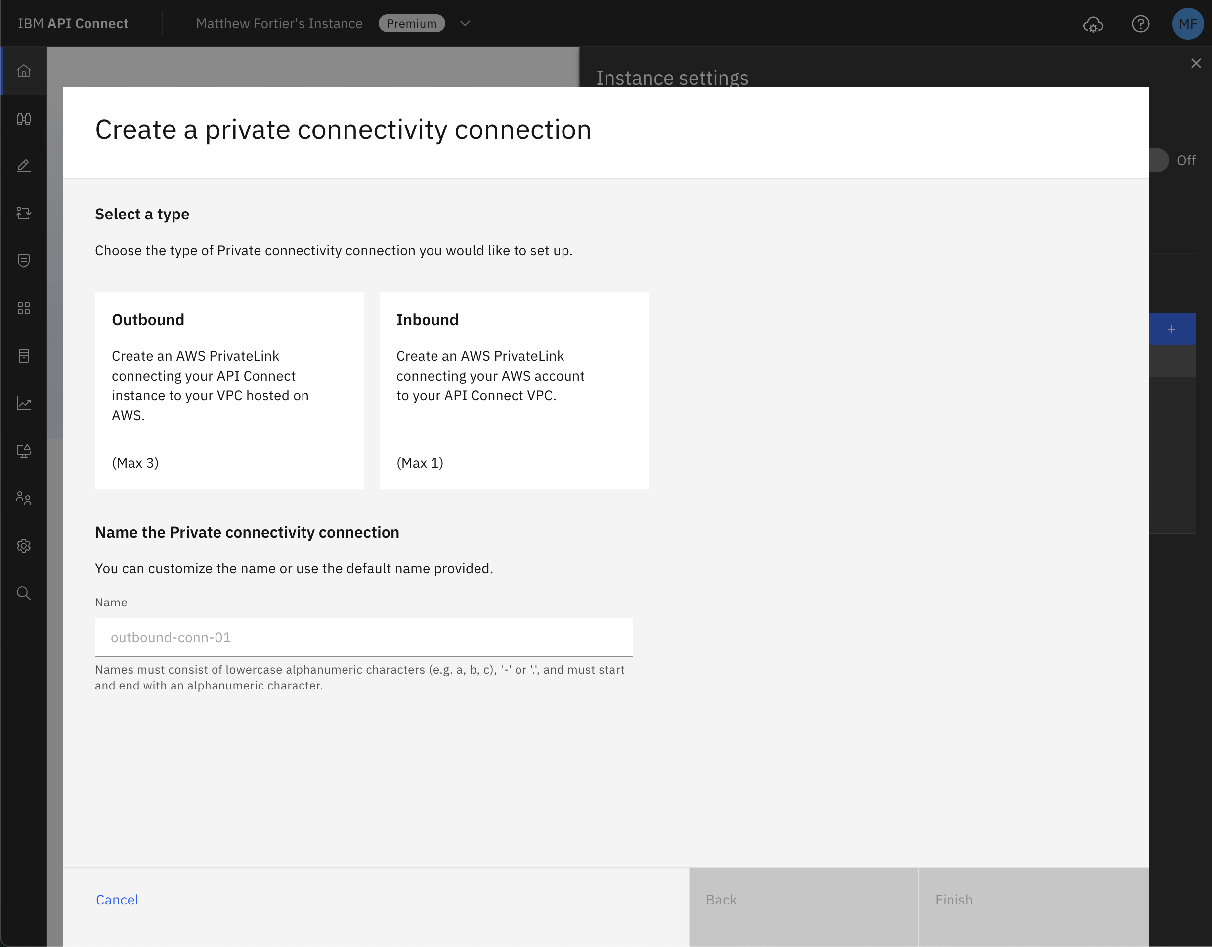 We're thrilled to announce our new Private Connectivity experience for API Connect on AWS! This update delivers a more intuitive user experience and greater flexibility in managing private connections within your API Connect SaaS instance. In this blog post, we'll walk you through the key improvements and new capabilities that make Private Connectivity an essential tool for enterprise API management, plus show you how to get started.