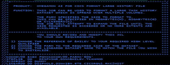 To get started, refer to the sample JCL provided in the TKANSAM library (KC2HISFM) for formatting and initializing the VSAM data set.