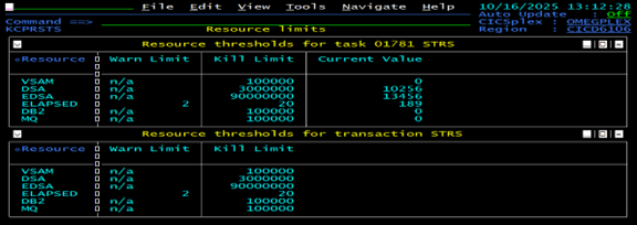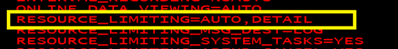 To enable this feature, use the RESOURCE_LIMITING=AUTO,DETAIL option in the Startup Controls within the Global Data Area.