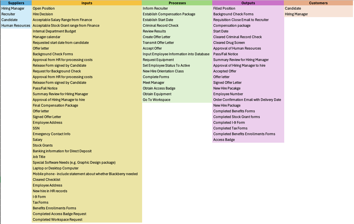 For each activity within the process (first focusing on the Happy Path and then exception paths), you’ll gather the SIPOC information. Start with the high-level process and then go down to individual activities.