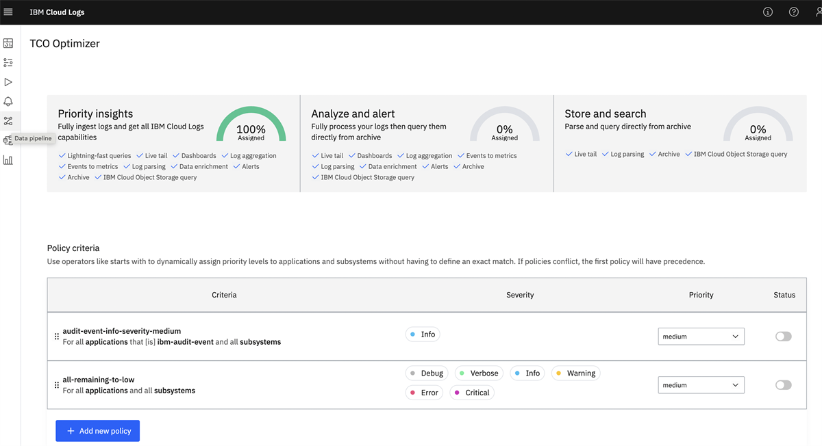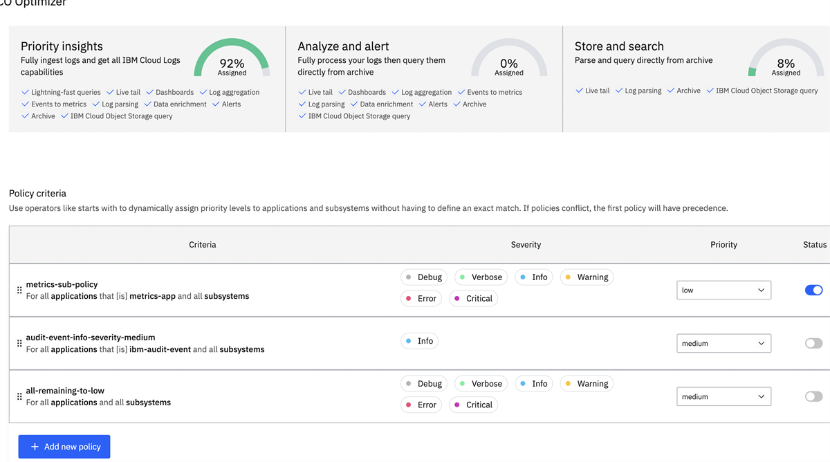 Before assigning logs to a specific tier, it’s essential to understand the capabilities and limitations of each. To simplify this process, IBM Cloud provides the TCO (Total Cost of Ownership) Optimizer, a powerful tool that helps you manage, route, and optimize logs efficiently across tiers.