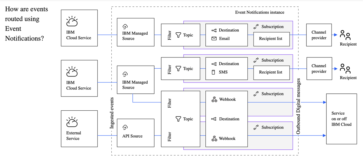 Before we declare the resources that Terraform will create for us, let us look at the resources requires to work with IBM Event Notifications.