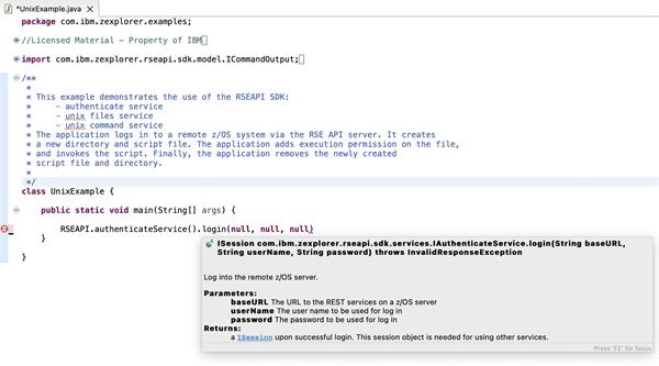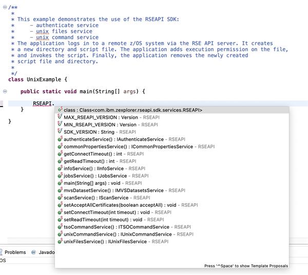 IDz provides a set of tools (content assist, code templates, etc.) for working with the Java SDK for RSE API. The tools are enabled if the SDK is part of the project's class path. Otherwise, the tools are not available.