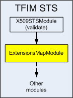 TFIM 6.2.0 has a built-in X509STSModule which performs token validation (validation of the certificate chain), and extracts the Subject DN as the principal name of the resulting STSUniversalUser. None of the other standard X509 attributes, or any custom extension data are read from the certificate. To assist with this use case I wrote an STS Mapping Module (following the pattern described in this developerworks tutorial) which extracts attribute data from an X509Certificate and inserts corresponding attributes in the STSUniversalUser. It is used in an STS chain, as shown in the following diagram: