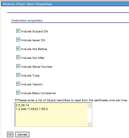 This post comes as the result of a request for TFIM help from a colleague. I thought the work product was useful and generic enough to be of interest to others. The use case was a user identity mediation flow, with a TFIM STS chain to validate an X509 certificate (sent as a BinarySecurityToken) and extract custom extension attributes. The value from one of the custom extension attribute is then used by another identity mapping module to lookup user attributes in an LDAP repository.