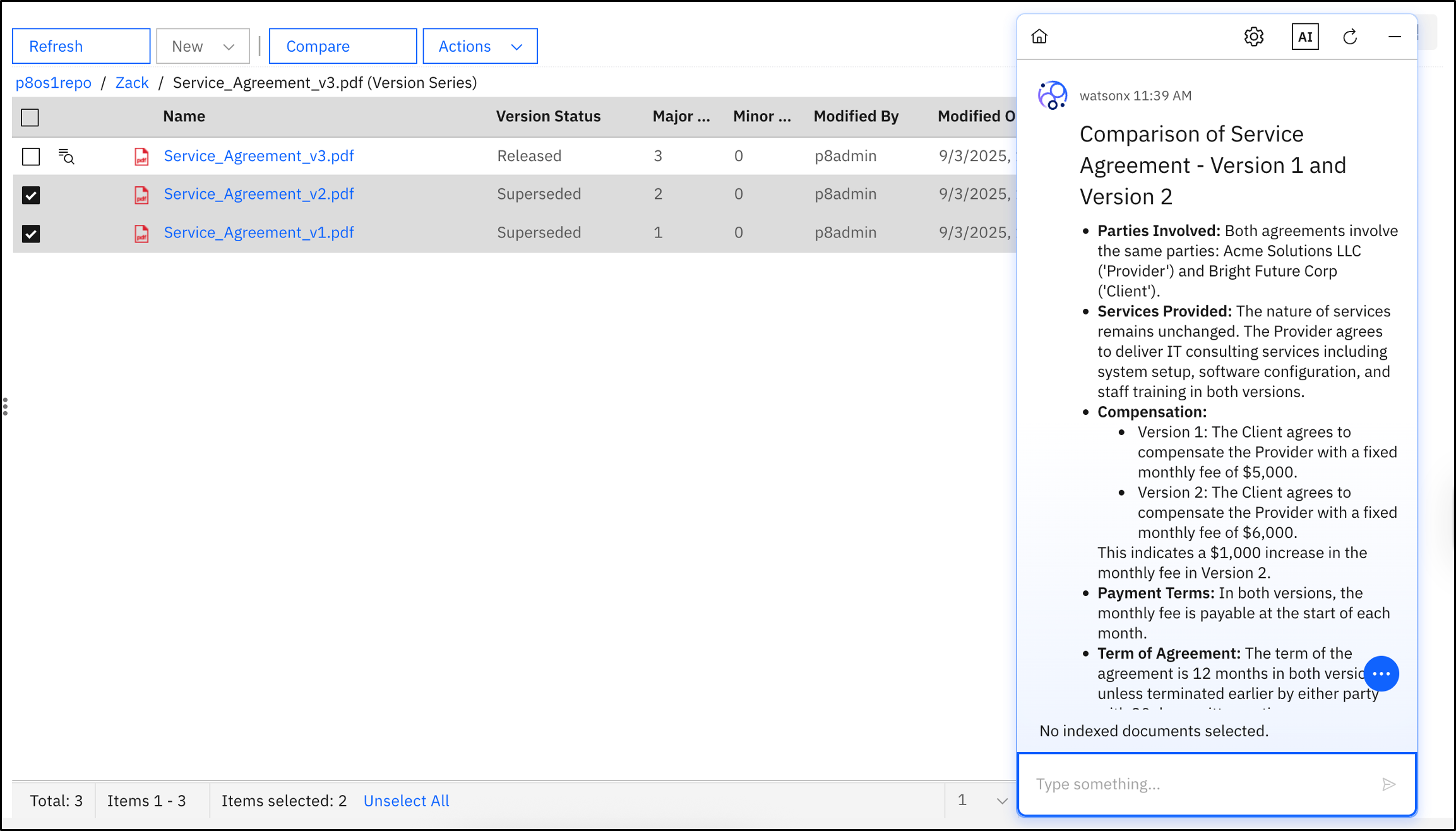 September 2025 brings exciting new updates for IBM Content Assistant, the generative AI add-on to IBM FileNet Content Manager that helps organizations apply generative AI to accelerate how they glean insights from information buried within their content repositories. These updates provide our clients with flexibility regarding hosting location and help them unlock deeper, more meaningful understanding of their documents. More information about Content Assistant can be found in the IBM Knowledge Center.
