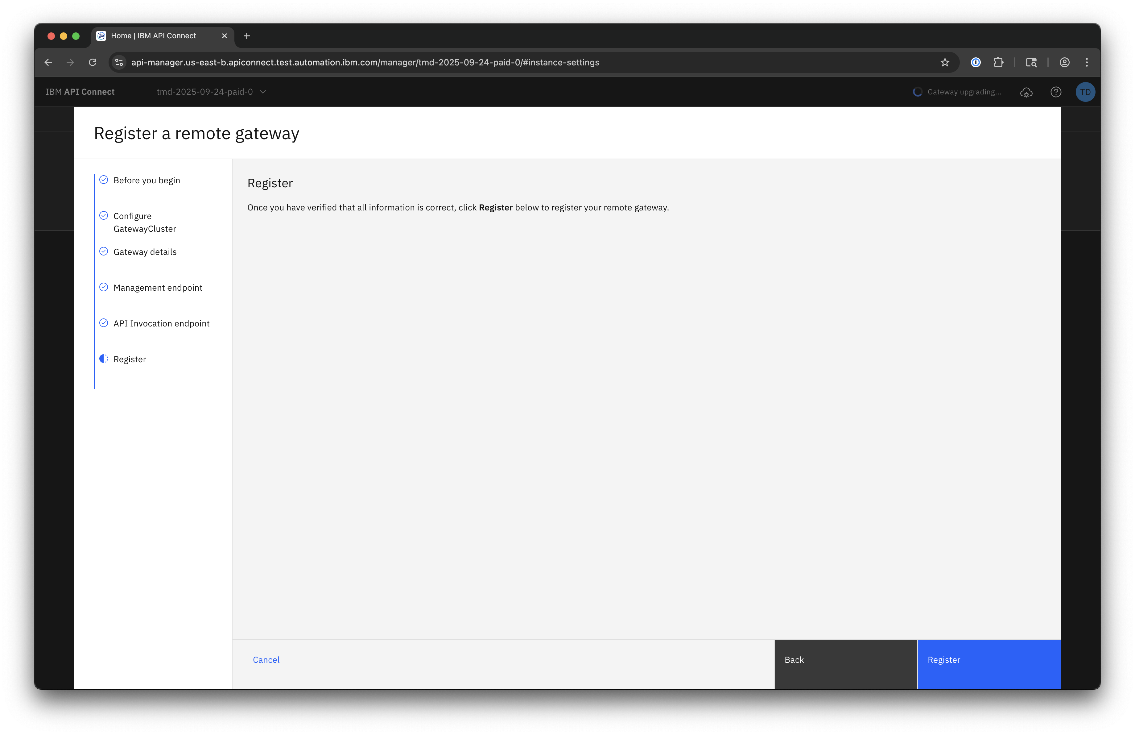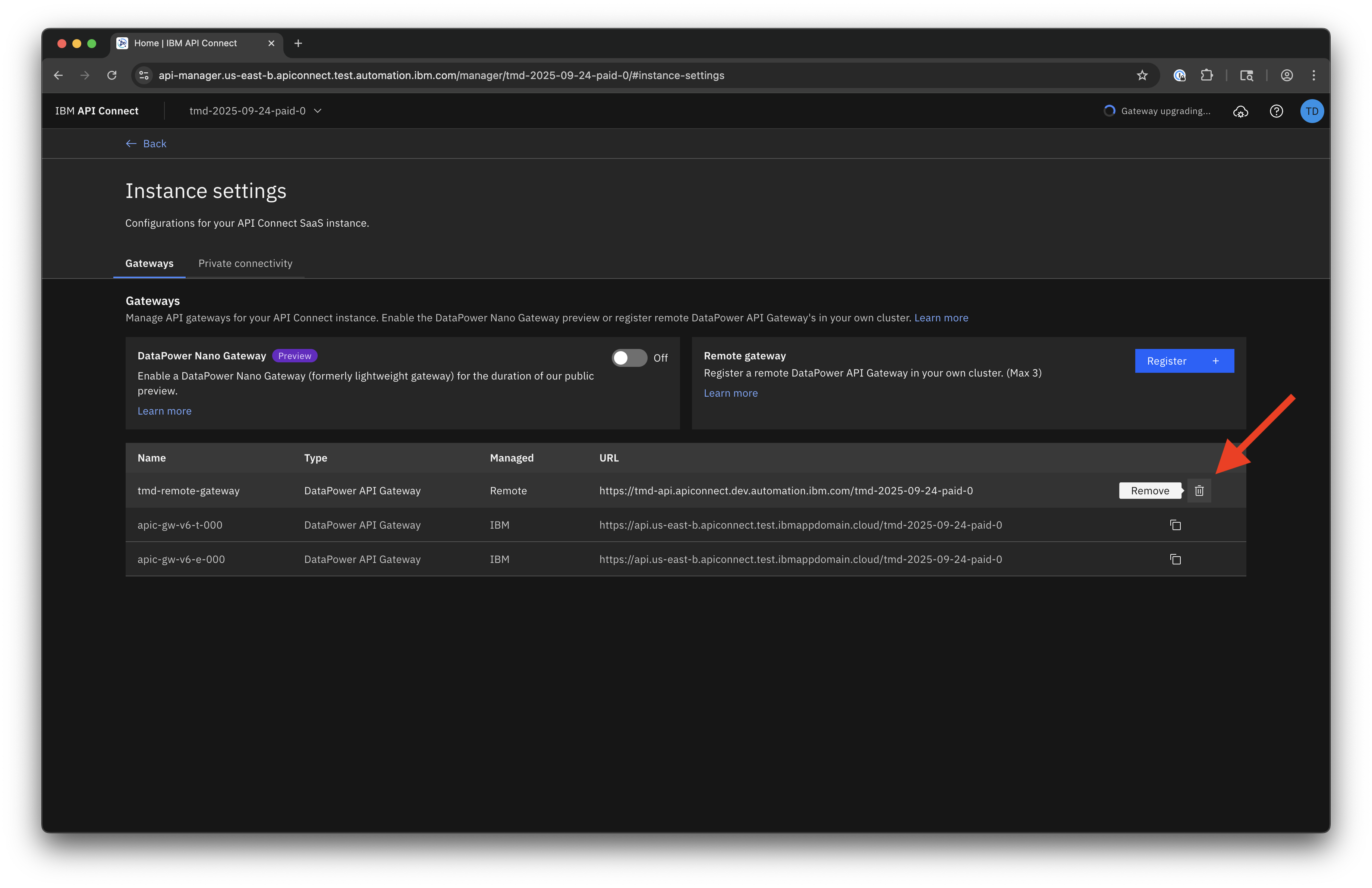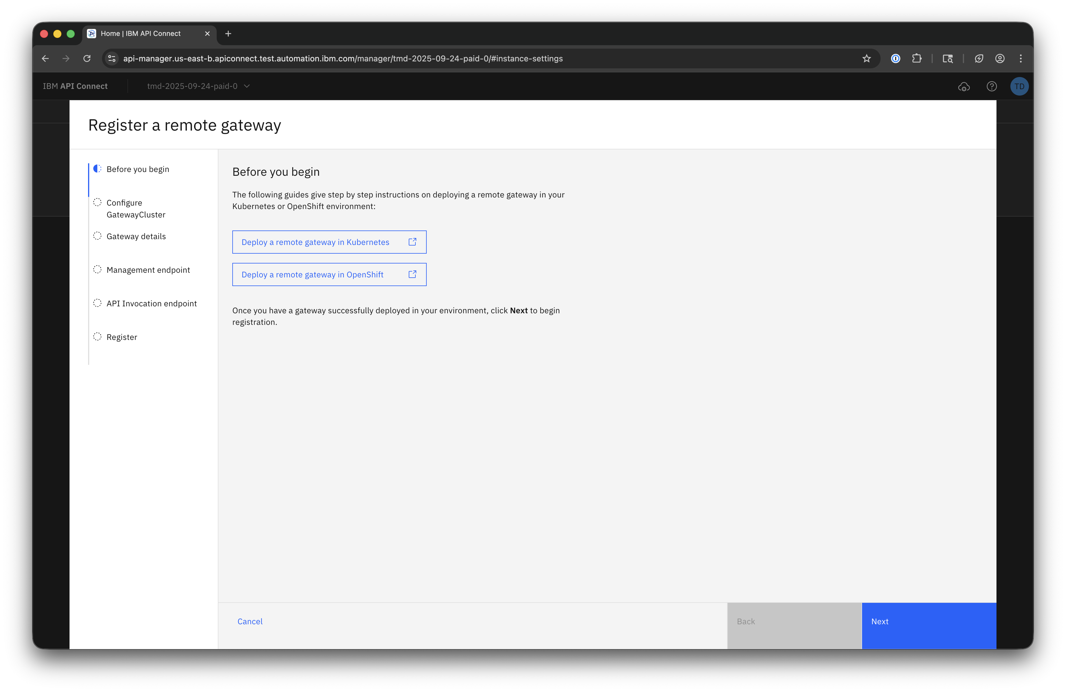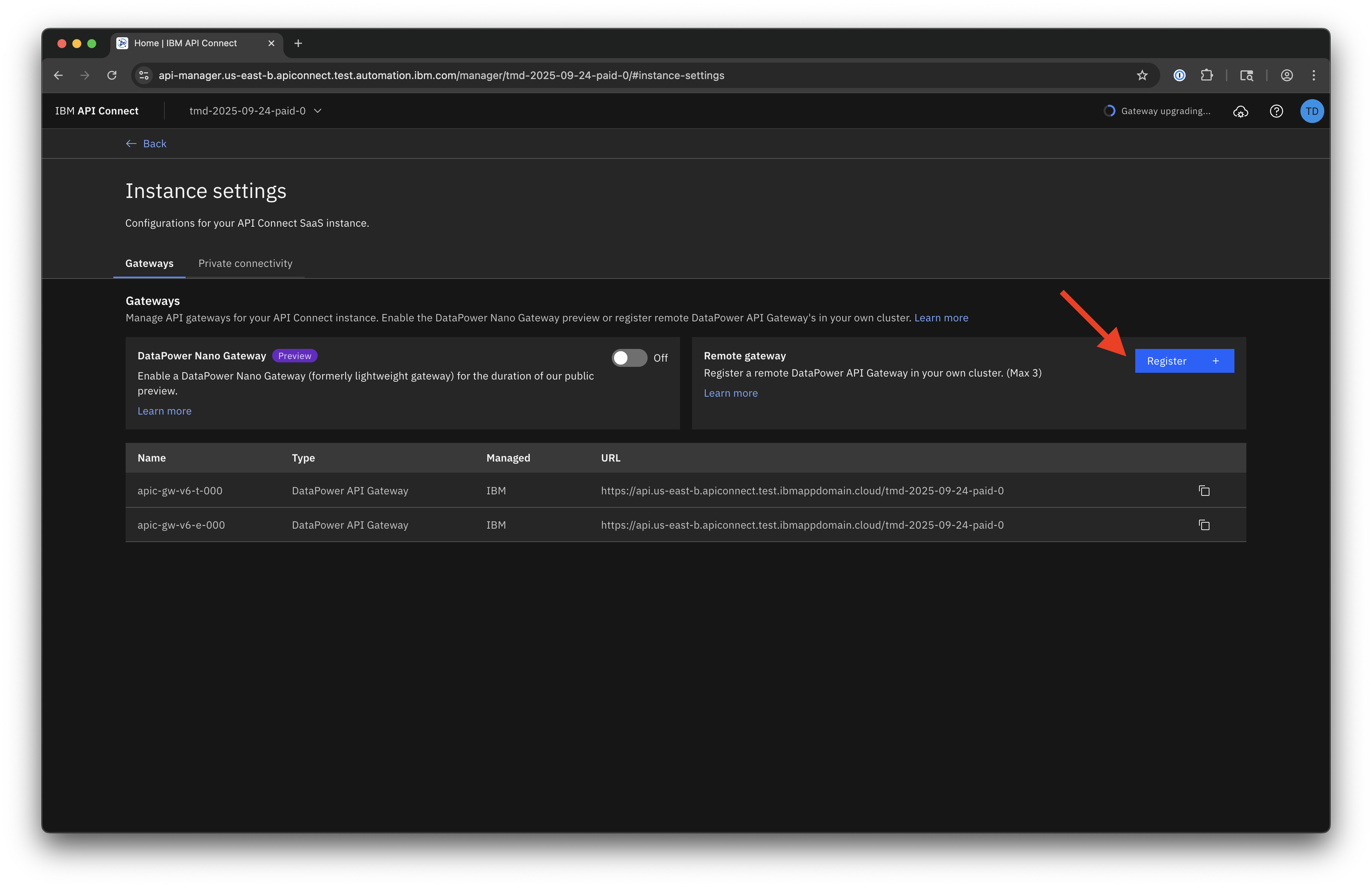 Remote Gateway Registration requires that you have a DataPower API Gateway deployed in your own environment.