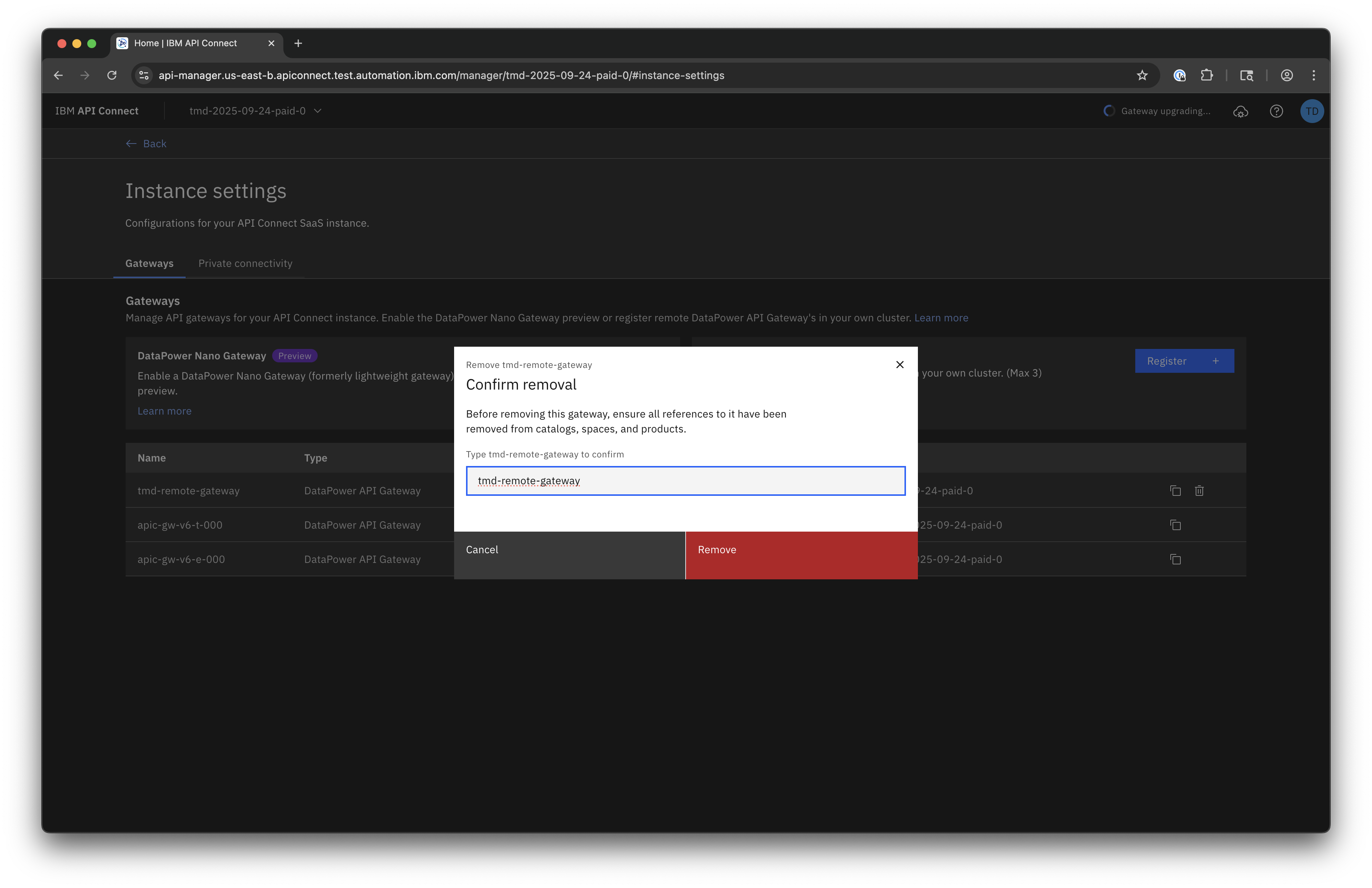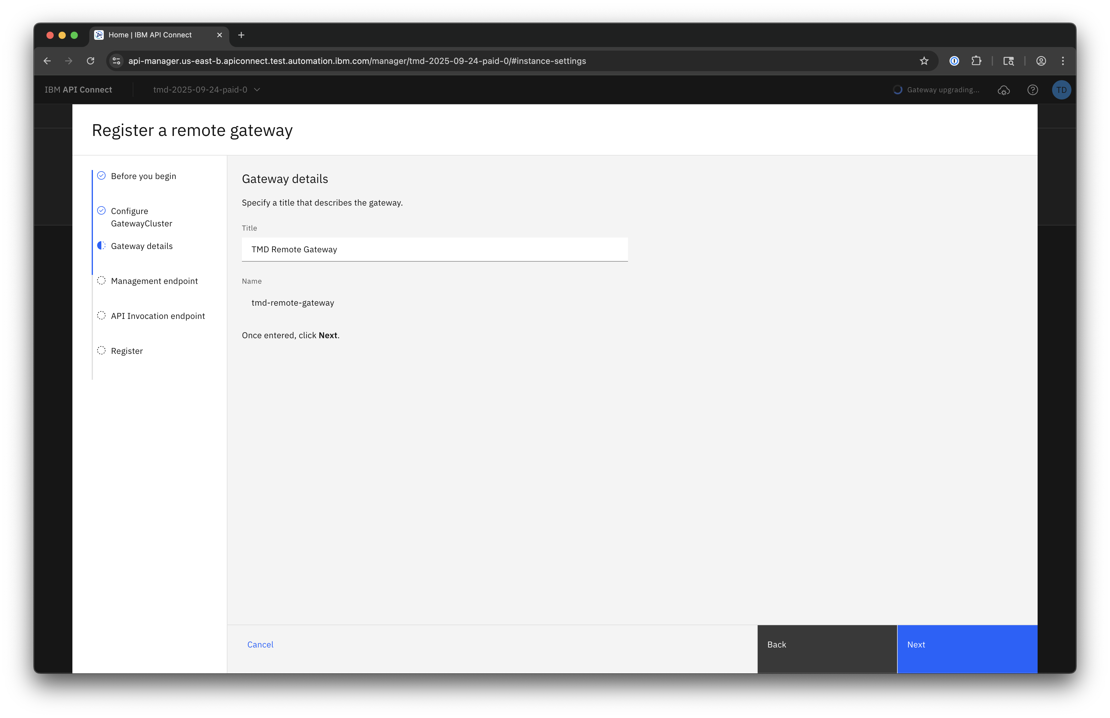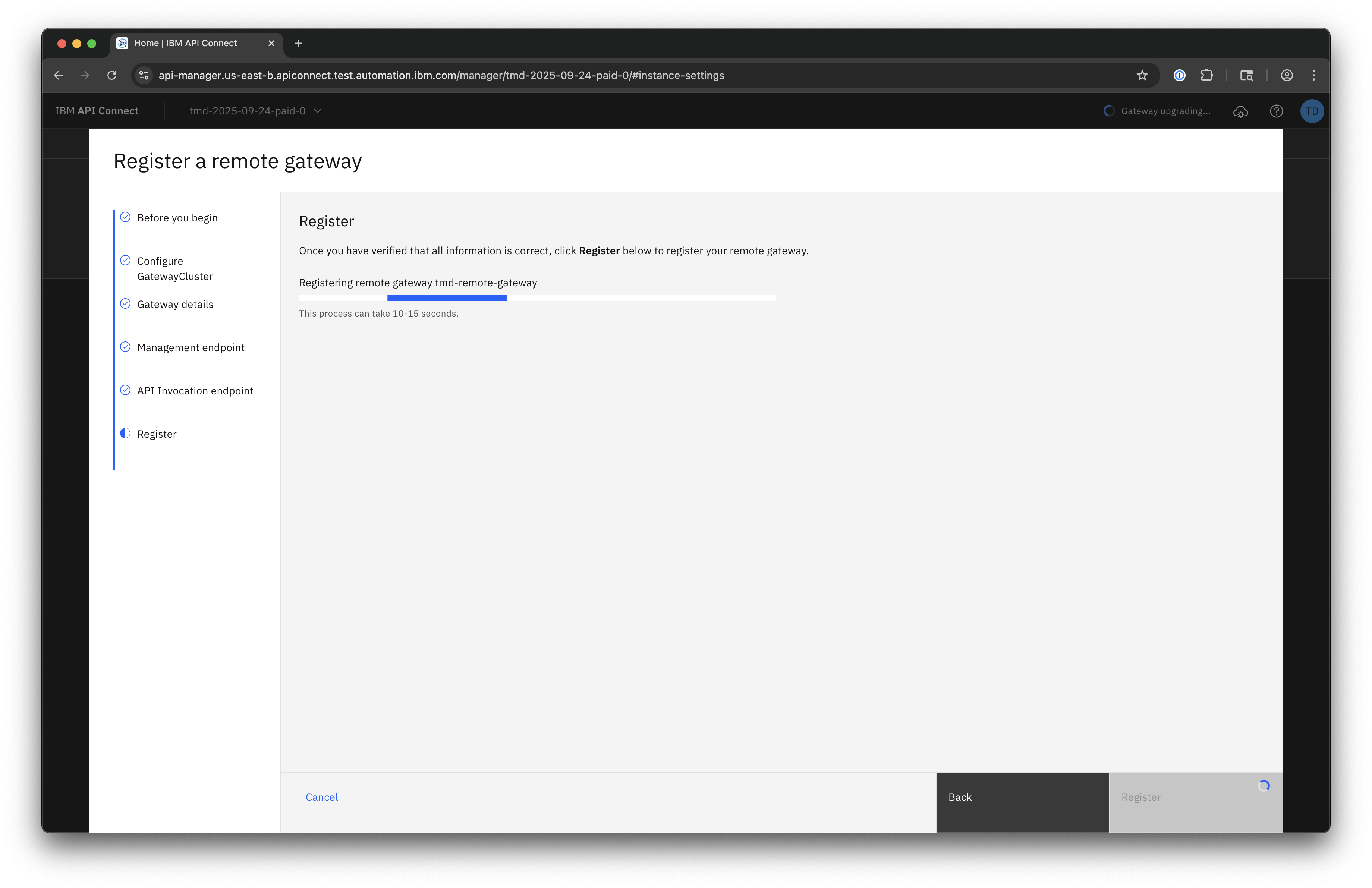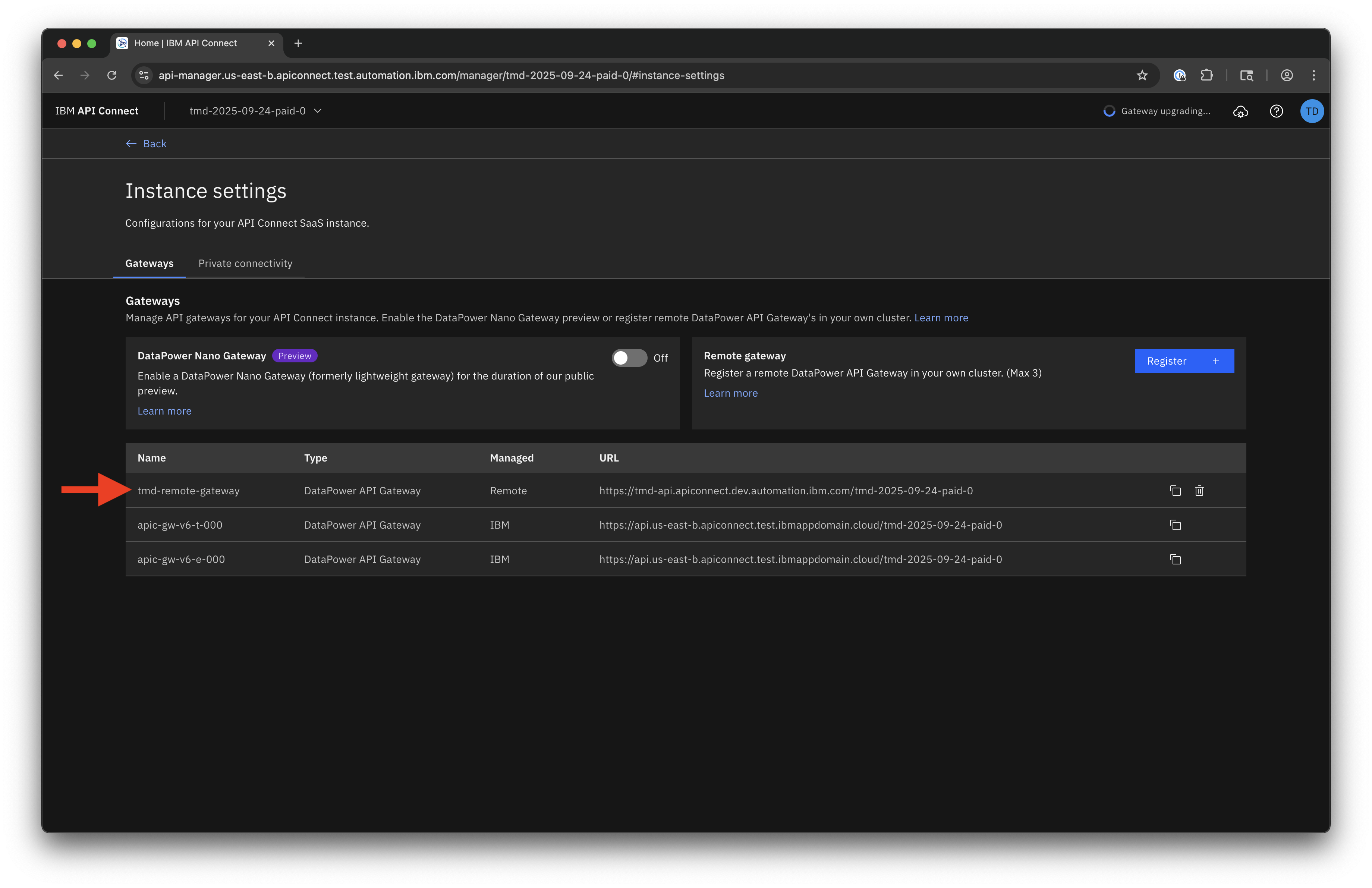 Remote Gateway Registration requires that you have a DataPower API Gateway deployed in your own environment.