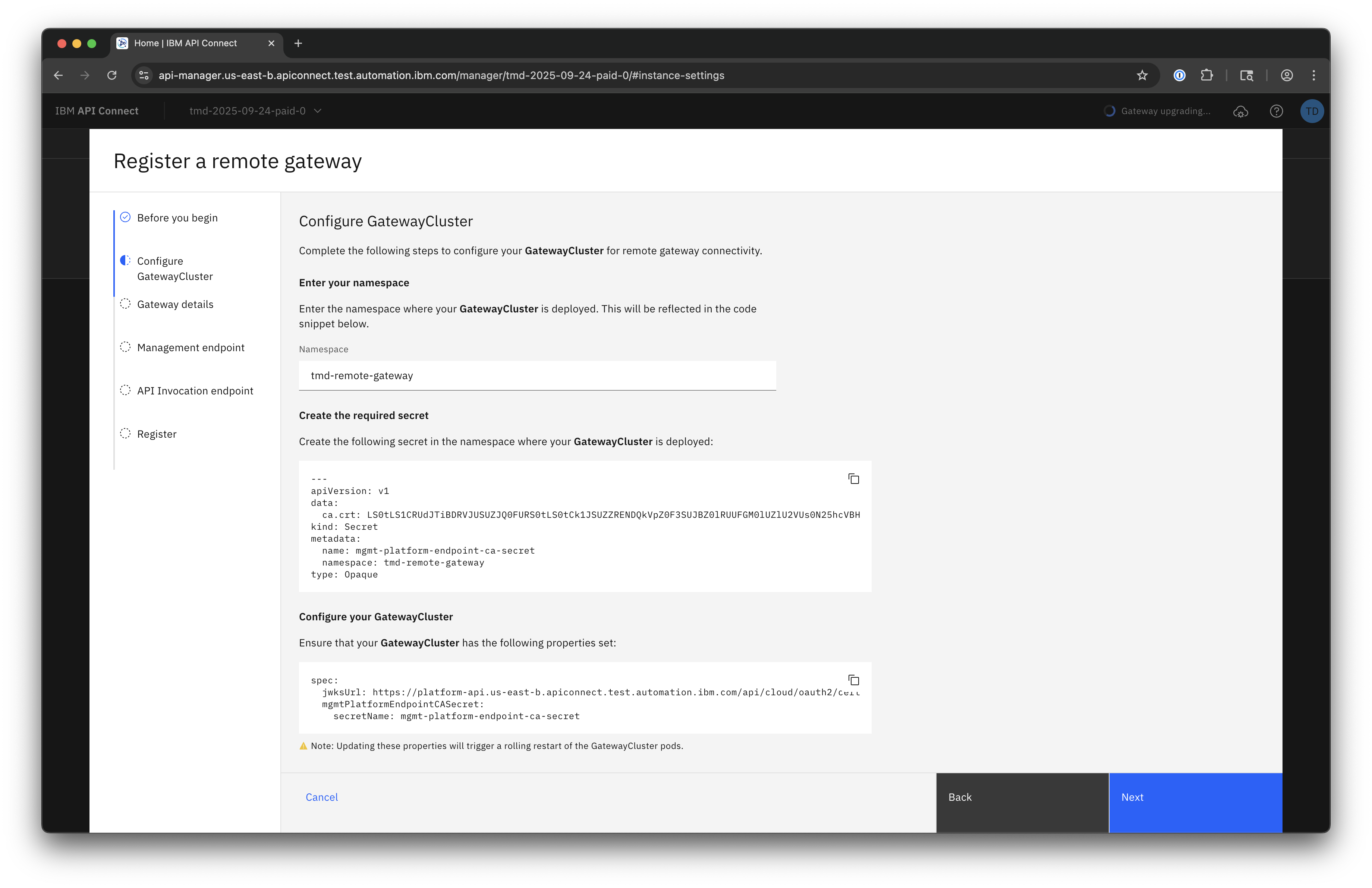 Please also keep an eye out for future enhancements to this feature, including template-led deployments for those without a preexisting DataPower API Gateway as well as SNI and TLS customization options.