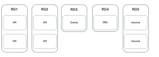 DRS has an existing capability of defining a 'Recovery Group' i.e. a collection of related resources of the same workload type like Virtual Machines or database servers or volumes.
