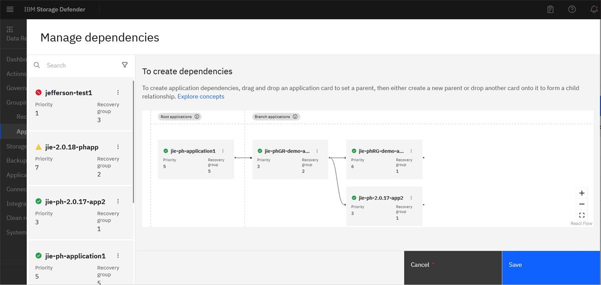 These relationships can be created and extended very easily with a simple and intuitive drag and drop interface on the DRS dashboard. And these visualizations provide valuable insights into how the recovery planning can be done based on precedence and sequencing.