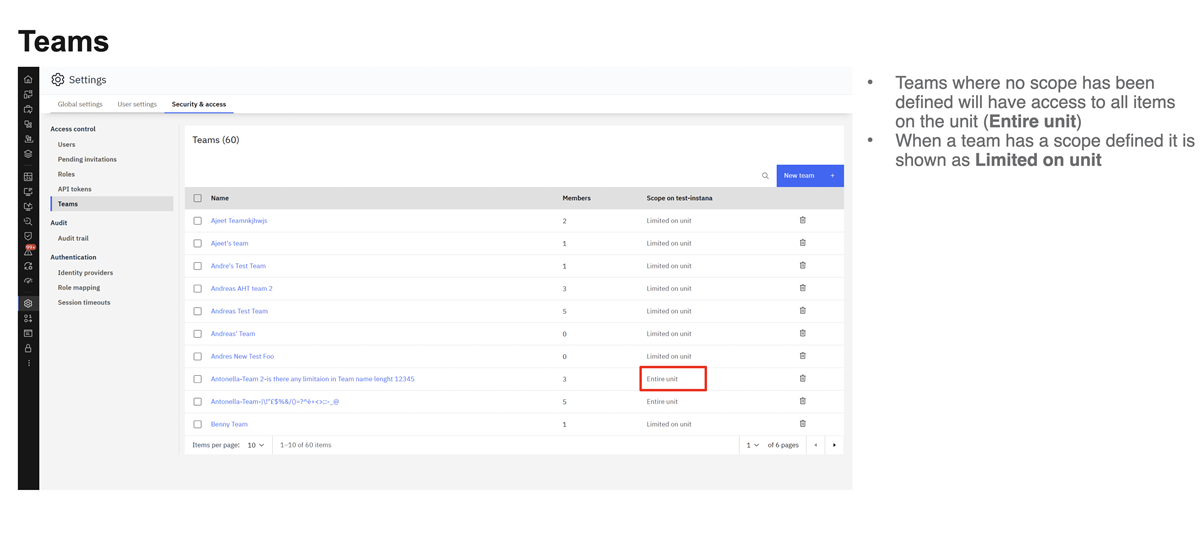 1. Navigate to Settings → Security & Access → Access Control → Teams