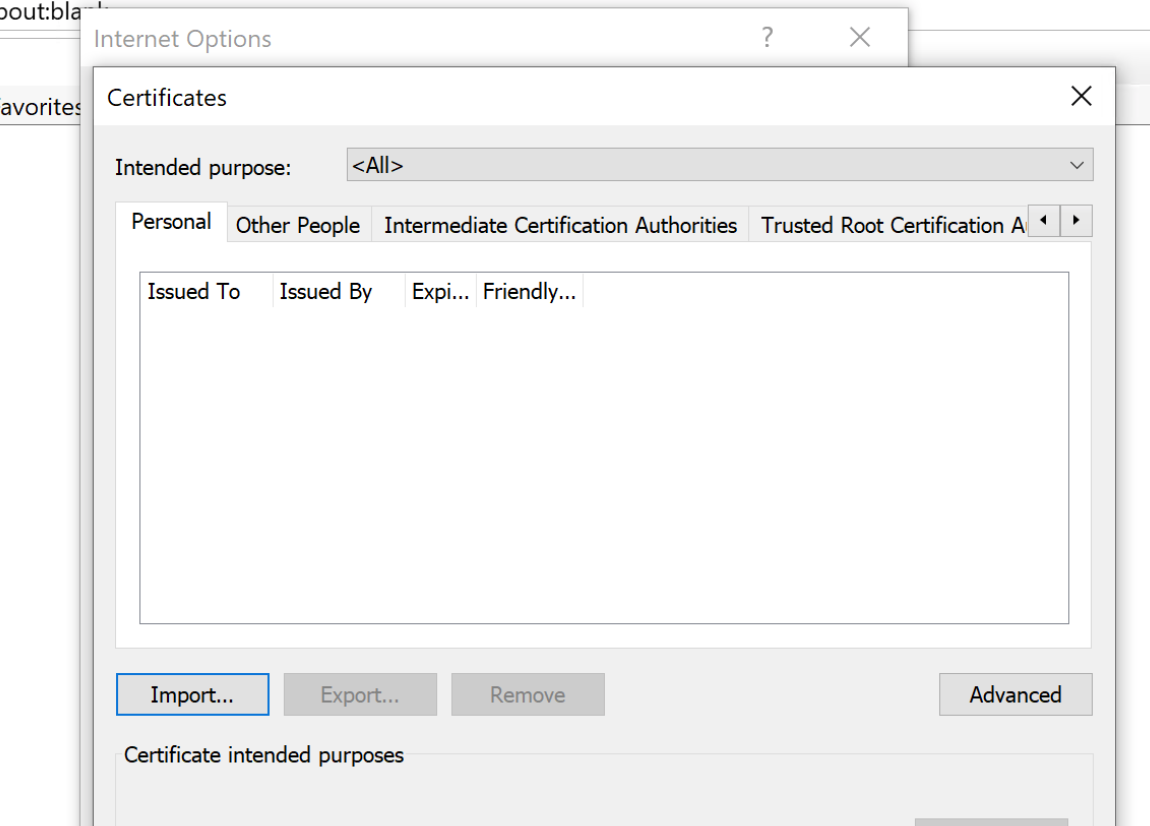 • Open your Internet Options, switch to “Content” tab, then click on the “Certificates” button