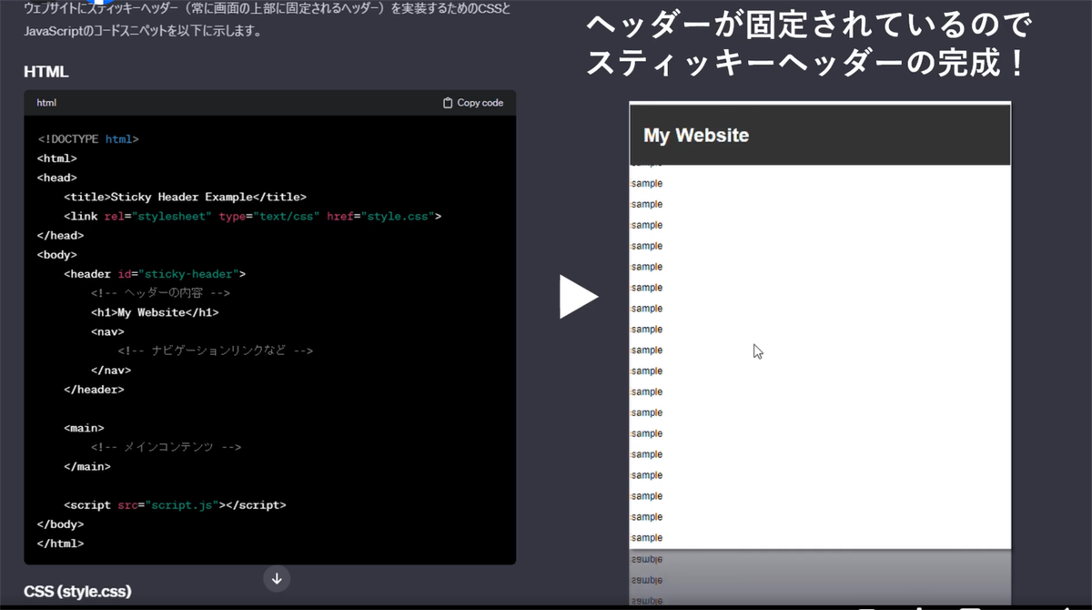 • 1.  ほぼテク12月30日ChatGPTで学ぶ!CSSとJavaScriptによるスティッキーヘッダーの魔法