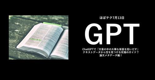 ほぼテク 7月13日ChatGPTで「文章の中の大事な単語を拾いだす」テキストデータから宝を見つける究極のガイド?論文メタデータ編!