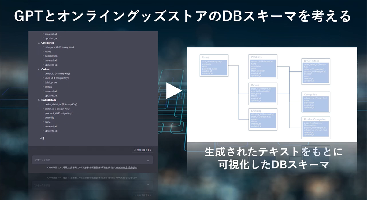 ほぼテク9月23日ChatGPTを用いてデータベーススキーマを効率的に設計する!オンライングッズストア編!