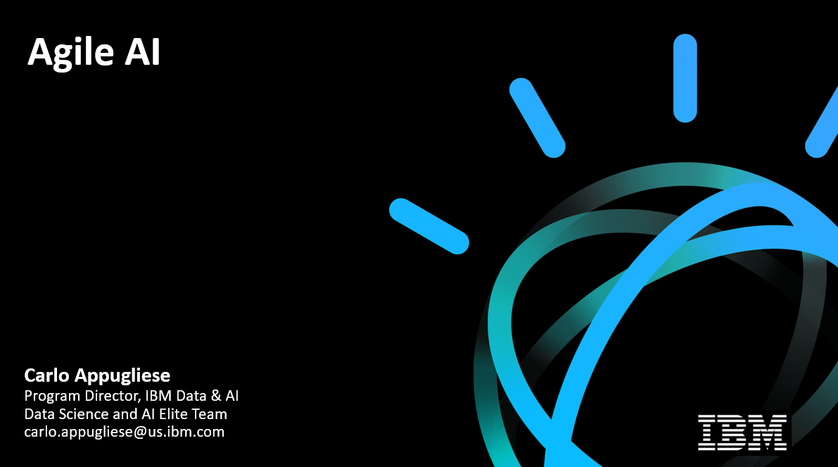 Thank you for everyone who could attend "Agile AI" webcast with Carlo Appugliese. You can now watch this On Demand and download the slides below. To learn more about the Data Science Elite team, please visit: ibm.co/dse