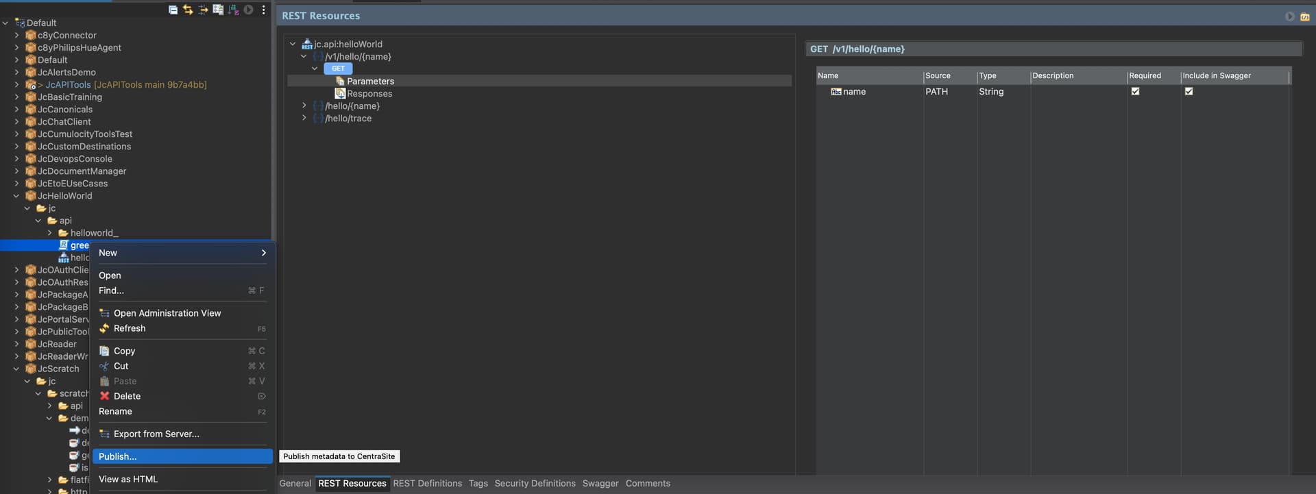 In our Integration Server, there is a service located in package “testPackage”. If you explore the package’s services, you will find three services (made in form of Flow Services in Designer):