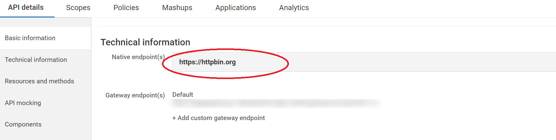 The API Gateway located in, for instance, https://apigatewayhost.com:5555
