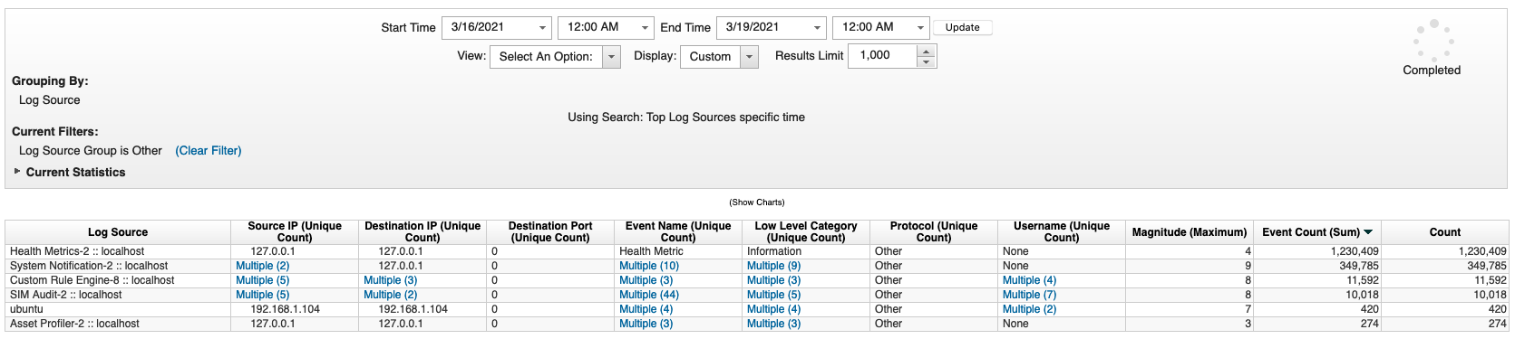 Event count is 1,230,409. Using the corresponding AQL export we get this result: