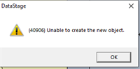 AVI stage on the datastage we are getting this error: (40906) Unable to create Object.