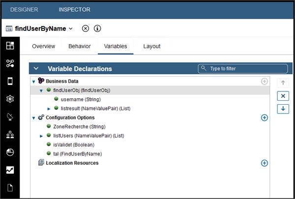 You probably did not bind the "findUserByName" coach view with a variable (in the coach).