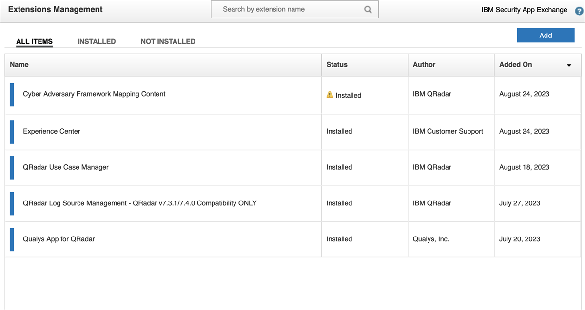 Cant view all the extensions in QRadar only updates when refreshed but all of them are installed