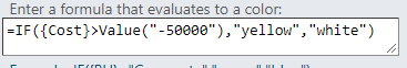 E.g., =IF((0 - {Forecast Variance}) > 50000,"yellow","none")