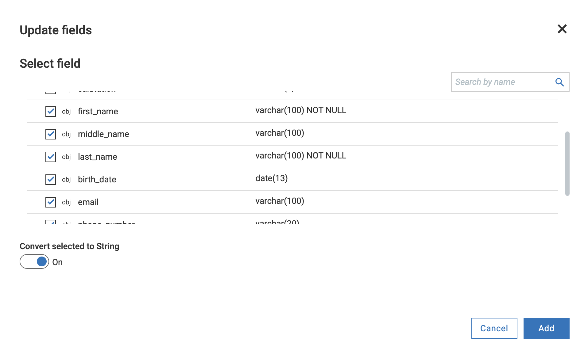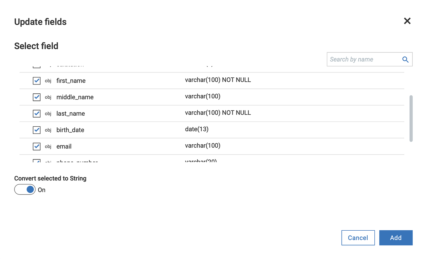 1. When creating the custom insert or update action, I make sure to activate the “Convert selected to String” option. Here you can see I have a date column in my table.