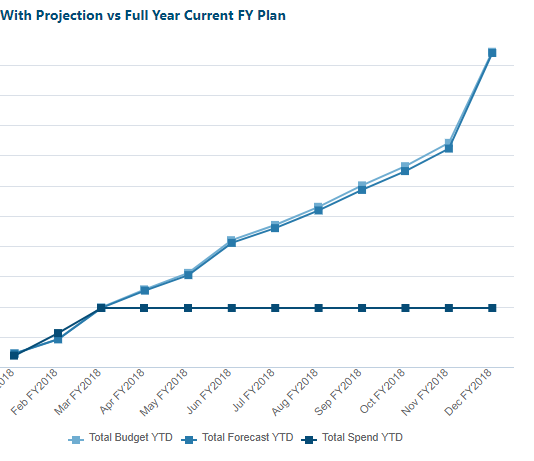 Does anyone know how to prevent Total Spend YTD from carrying to months that haven't occurred yet on a line chart? In the example below, we have YTD cost through March so I would like to prevent the Total Spend YTD line from going@ past March. See screenshot below for example. @Josh Koziel @Abra McCollum