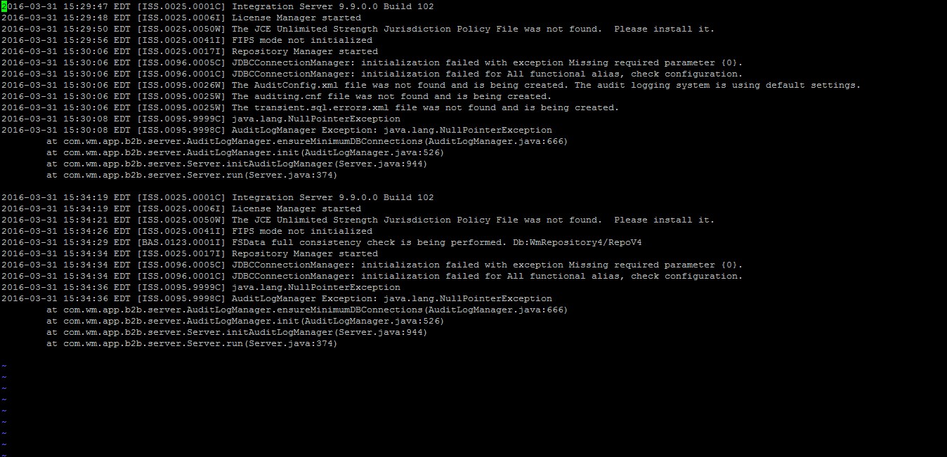 -Start the Integration Server instance by running the startup.bat/sh file located in the Software AG_directory \profiles\IS_instance_name \bin directory.