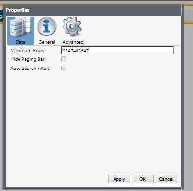 If you want to limit the number of rows in a table on a report, make sure that you are in the development/config environment. Switch to edit mode, then right-click on the table and select Properties. On the Data tab, there is a field that says Maximum Rows, where you can select the number of rows that you want to show on the report per page.