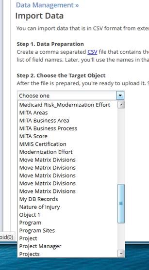 So we are trying to figure out how to get rid of these deleted objects so they don’t show up in the Import Data drop-down list.