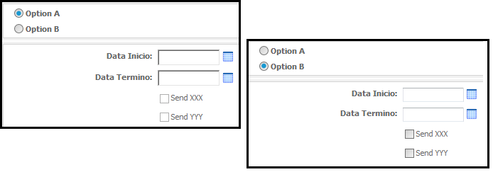 If my selection is “Option A”, the checkbox must be disabled, but if my selection is “Option B”, all checkbox must be enabled. (Attachment)